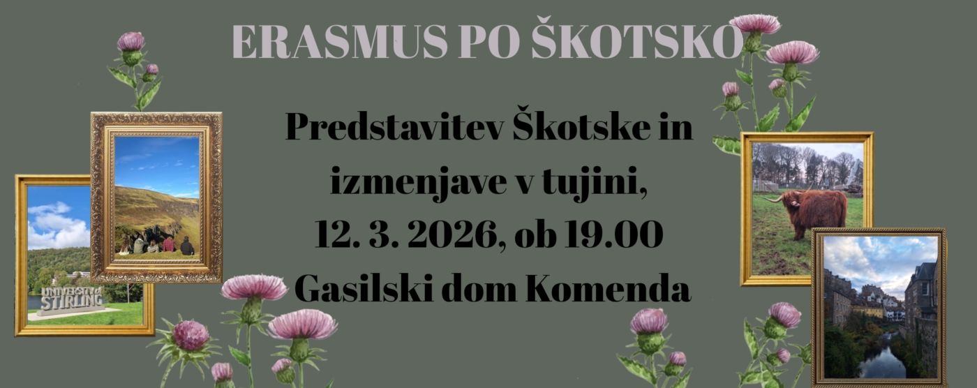 - Erasmus po ŠkotskoV četrtek, 12. marca 2026, ob 19.00 vas vabimo v Gasilski dom Komenda na predstavitev Škotske in izmenjave v tujini v okviru programa Erasmus+. Vljudno vabljeni!