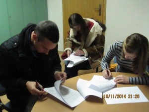 19. 11. 2014 Podpis pogodbe s štipendisti Rokom Valenčičem, Barbaro Pavlinič in Vanesso Bera. Štipendiranje je bilo podpisano za eno leto.