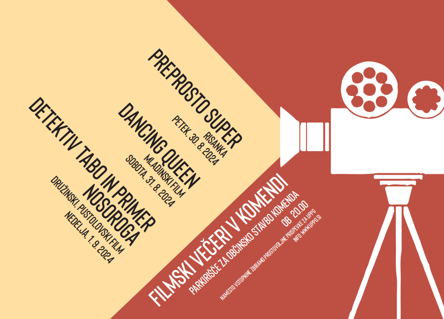 Vabimo vas, da se nam pridružite na filmskih večerih, ki bodo potekali konec avgusta. Pripravili smo pester izbor filmov, ki vam bodo popestrili poletne večere. Odvijali se bodo med 30. 8. in 1. 9., v tem času pa si bomo ogledali tri filme. Filme bomo predvajali ob 20:00 za Komendsko občinsko stavbo (Zajčeva cesta 23). Več informacij o filmih lahko najdete spodaj.